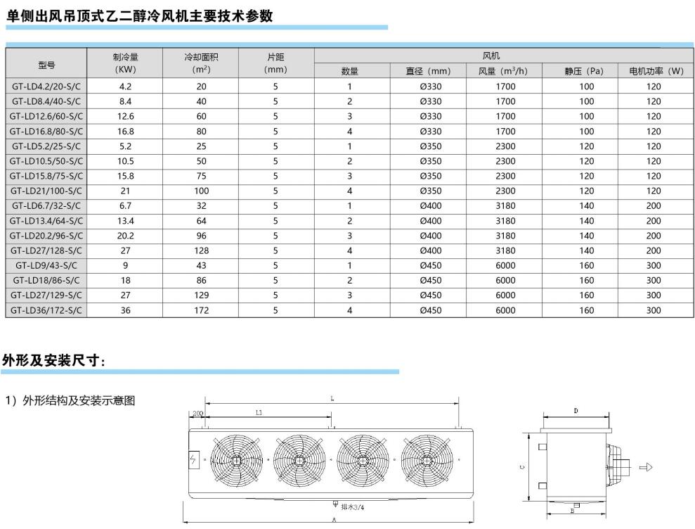 2) 采用的风机防潮湿、邮低温,全一个让能工以工,地少助时间短、效果好 3)采用不锈钢管组成的电热融霜系统,电热管直接插入盘管内,